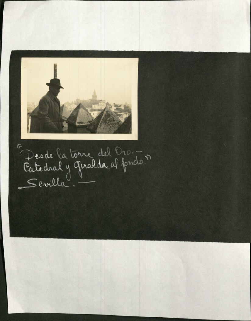 "Desde la torre del Oro. — Catedral y Giralda al fondo." Sevilla