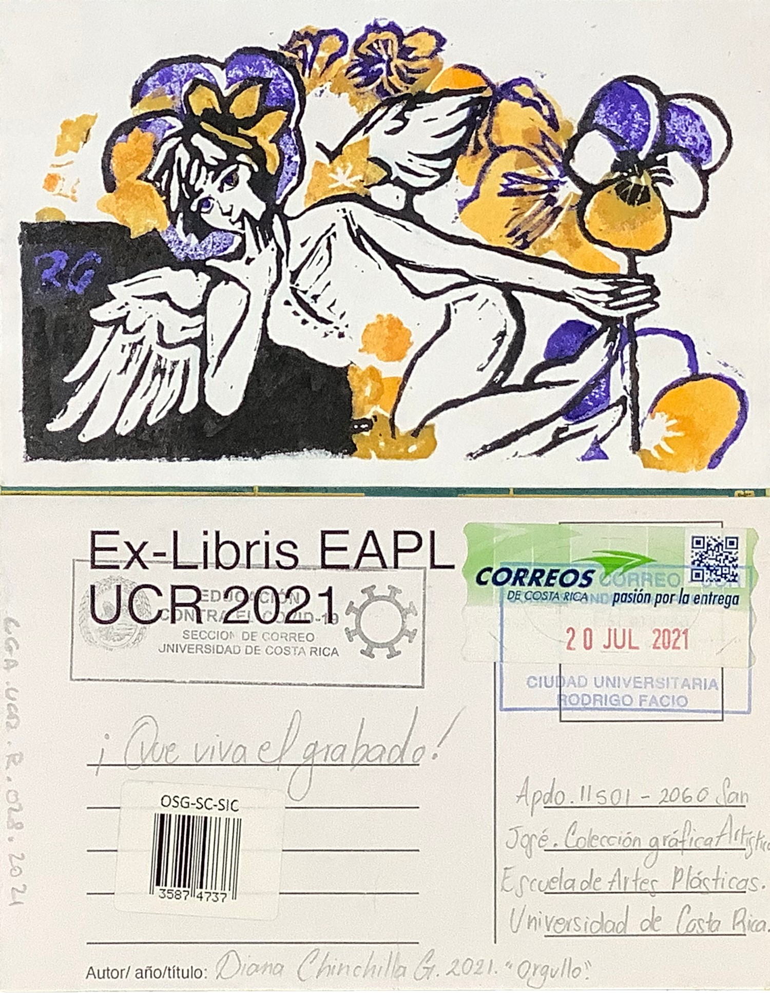 | dc.description.abstract | Grabado en relieve que representa la figura de una figura humana acostada de medio lado con alas, rodeado de flores, colocado en una postal, elaborado con tonos blanco y negro, acompañado de flores de colores vivos. | |