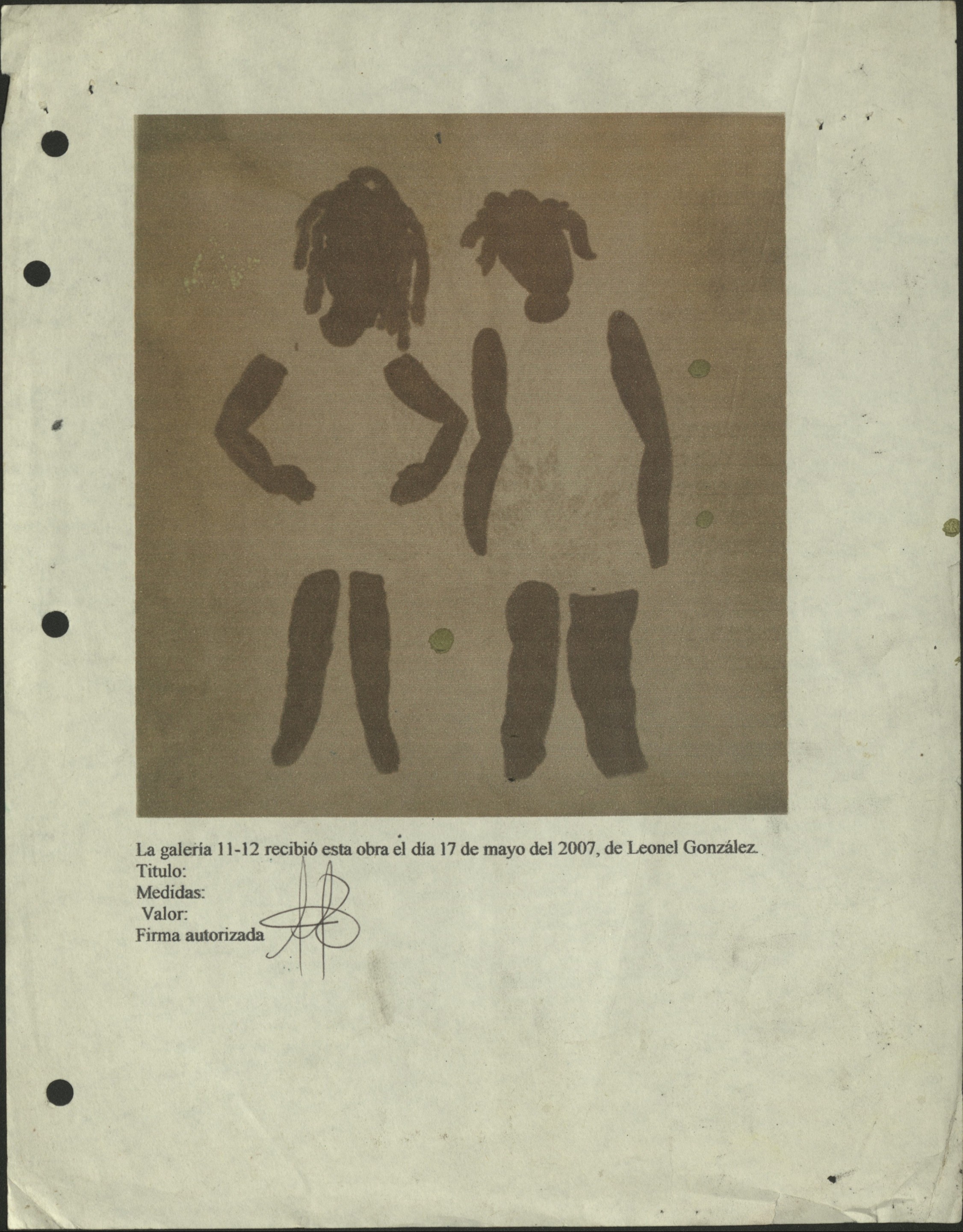 | dc.description | Papel levemente doblado y arrugado, con huecos y manchas. Información de recepción de la obra por parte de la galería 11-12 | |