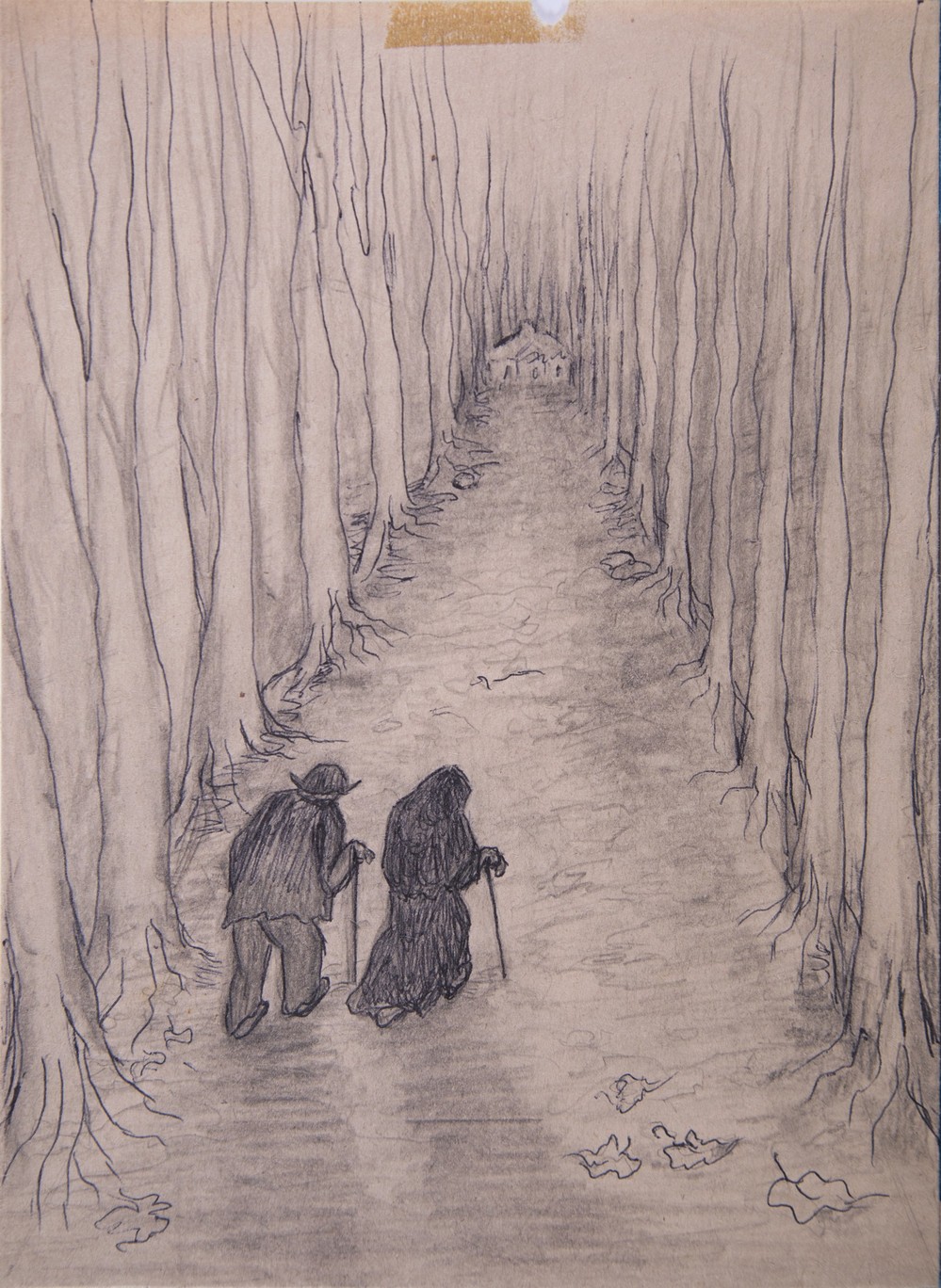 | dc.description | La obra consiste en un boceto de un camino con dos personas con bastón caminado por el camino. | |