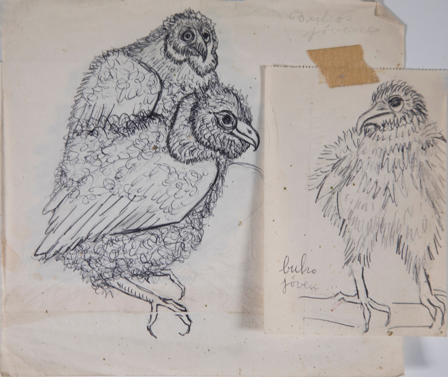 | dc.description | La obra consiste en un boceto de búhos, elaborado con grafito y tinta. | |