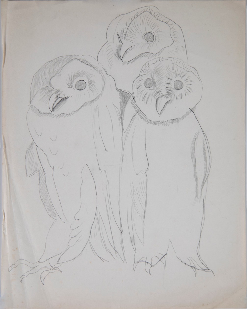| dc.description | La obra consiste en un boceto de tres lechuzas, elaborado con grafito. | |