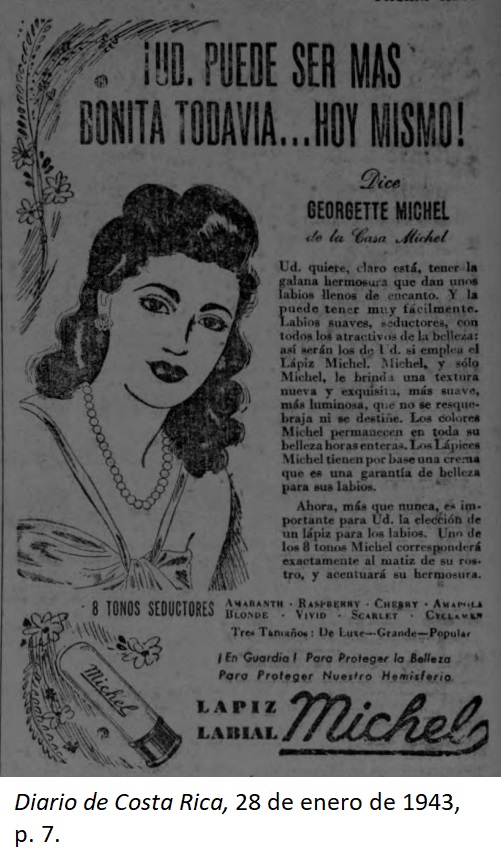 | dc.description | El anuncio muestra en la parte superior el rostro de una mujer, bien arreglado y con su labios pintados resaltados. Debajo de este aparece el título del anuncio y seguido del texto explicativo que destaca las cualidades del labial Michel y al final la imagen de un labial de la marca Michel. | |