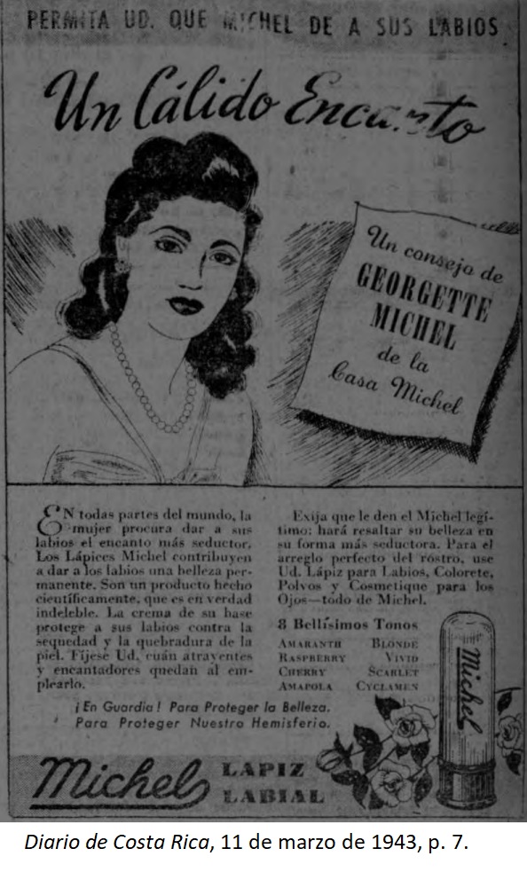 | dc.description | El anuncio muestra en la parte superior el rostro de una mujer, bien arreglado y con su labios pintados resaltados. Debajo de este aparece el título del anuncio y seguido del texto explicativo que destaca las cualidades del labial Michel y al final la imagen de un labial de la marca Michel. | |