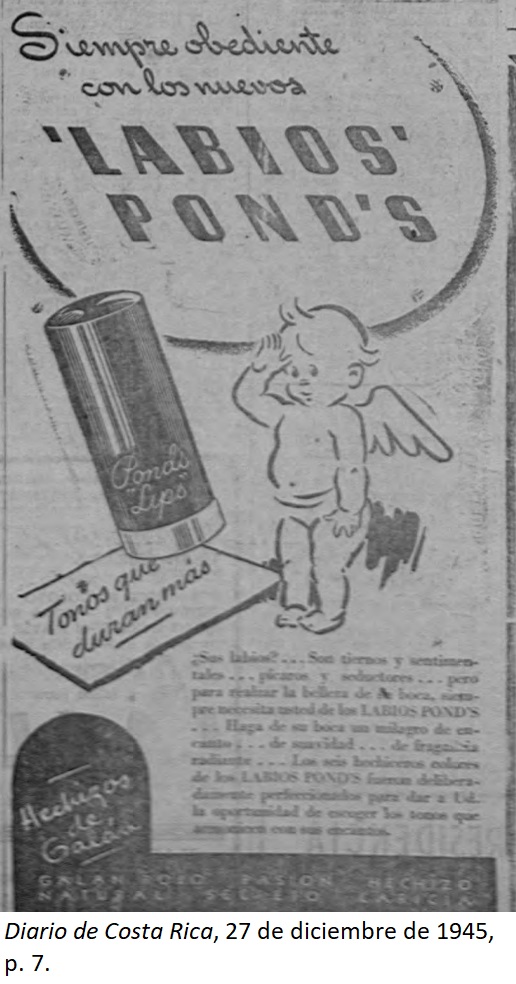 | dc.description | El anuncio muestra una imagen de un cupido y del labial de la marca Pond´s. Además, se muestra un texto explicativo que destaca las cualidades del labial Pond´s y la marca del labial en letras grandes. | |