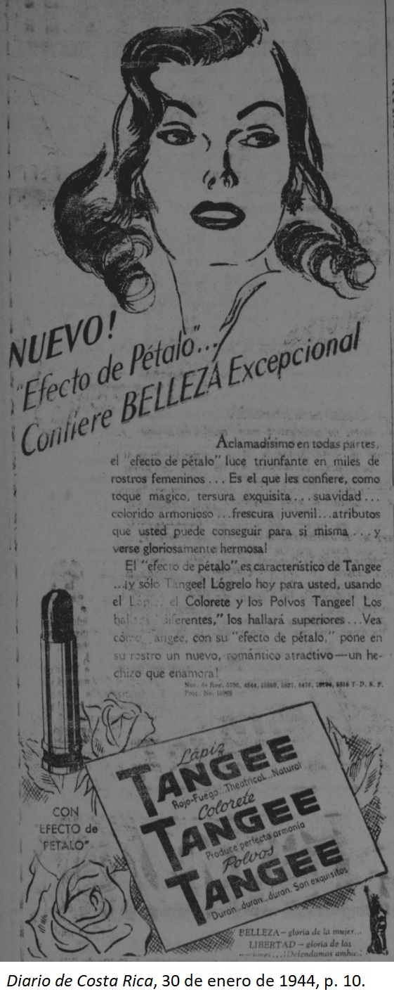 | dc.description | El anuncio muestra una imagen del rostro de una mujer y del labial de la marca Tangee. Además, se muestra un texto explicativo que destaca las cualidades del labial Tangee y la marca del labial en letras grandes. | |