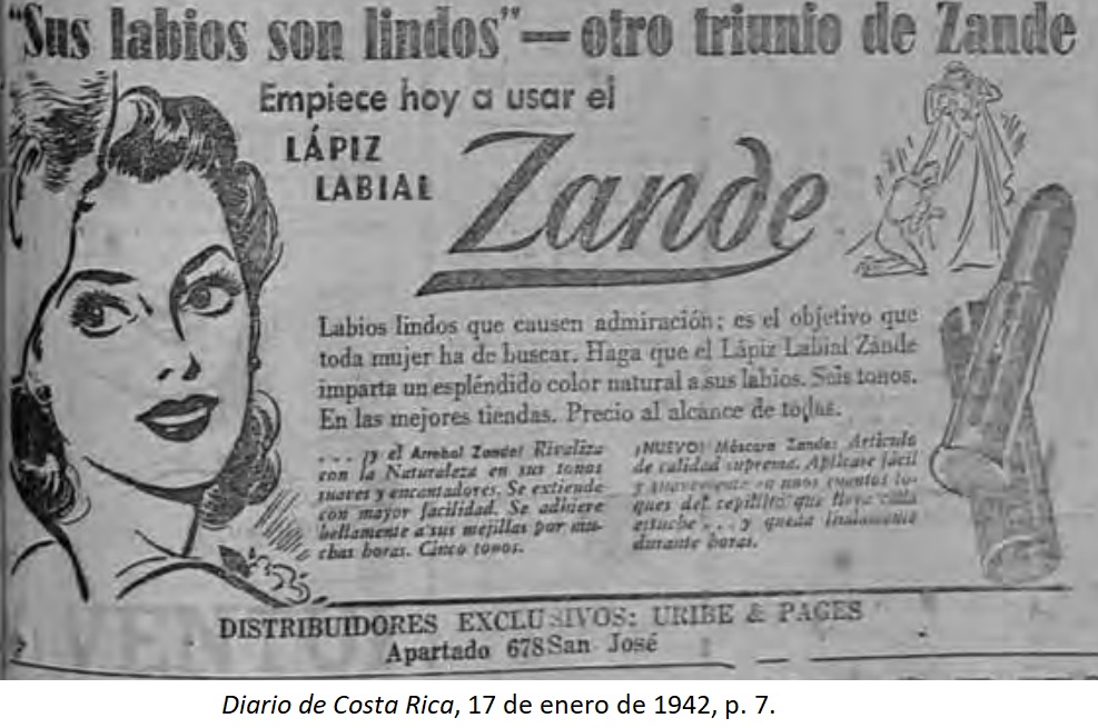 | dc.description | El anuncio muestra arriba un eslogan acerca del labial anunciado, debajo al lado izquierdo se muestra el rostro de una mujer maquillada y un labial de la marca Zande. Al lado derecho se presenta un texto acerca de las propiedades del labial de la marca Zande y los dibujos de unos labiales. | |