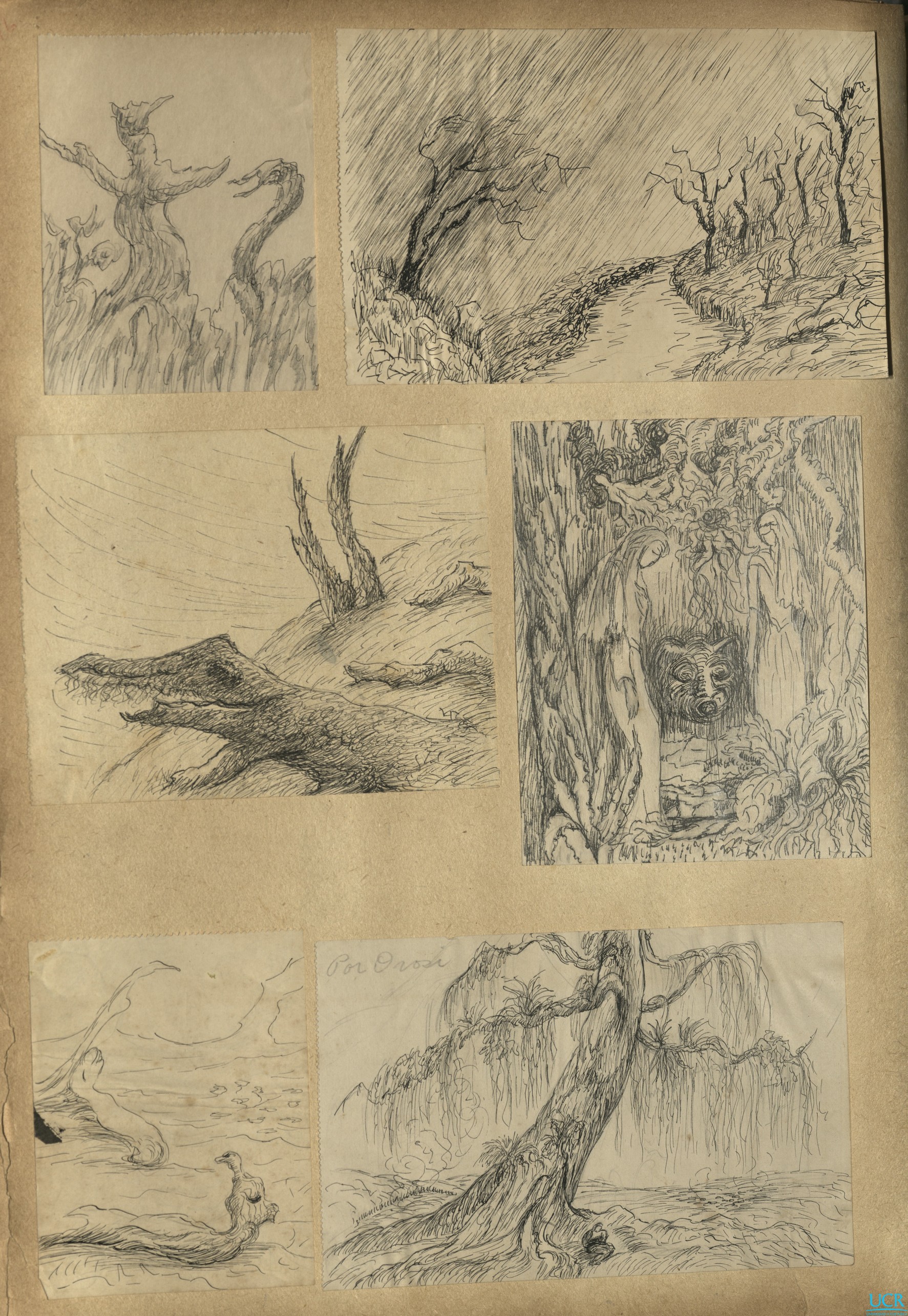 Amplia colección de bocetos con múltiples temáticas realizados por la artista a lo largo de varios años.
