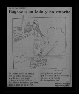 | dc.description | La caricatura se ubica en el océano, un hombre que va en una gran barco se asoma por la barda para darle la mano a un sujeto que navega en un pequeño bote, sin embargo, este último no parece querer darle la mano. | |