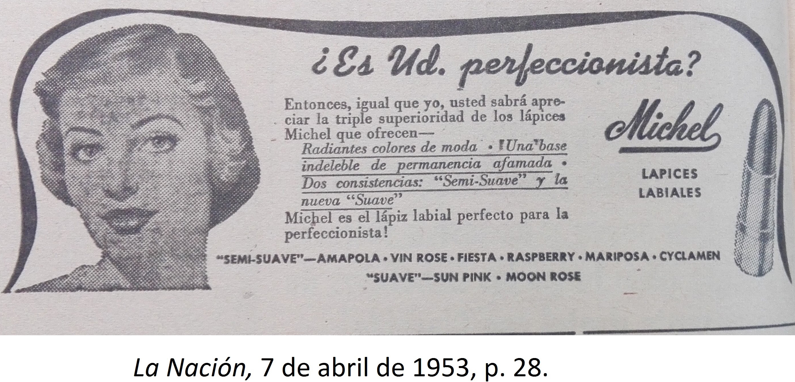 | dc.description | El anuncio muestra una imagen del rostro de una mujer y del labial de la marca Michel. Además, se muestra un texto explicativo que destaca las cualidades del labial Michel y la marca del labial en letras grandes. | |