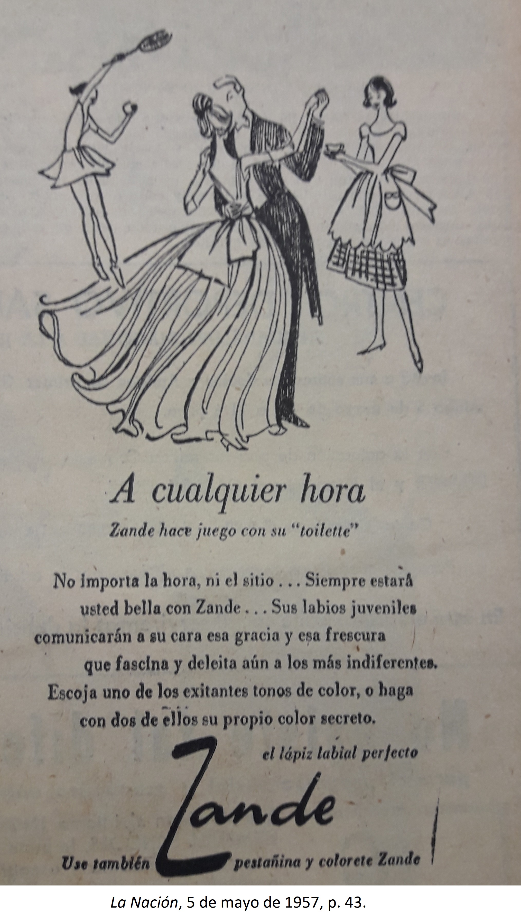 | dc.description | El anuncio muestra una imagen de una mujer y un hombre, así como del una mujer con delantal y de un hada madrina . Además, se muestra un texto explicativo que destaca las cualidades del labial Zande y la marca del labial en letras grandes. | |