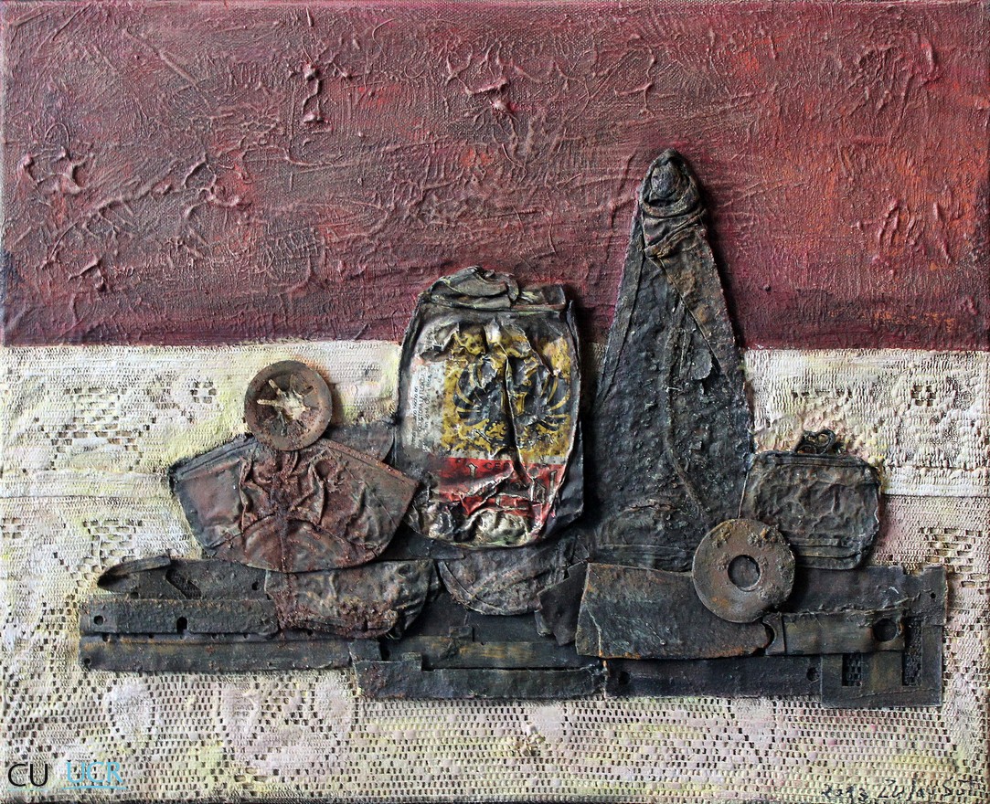 | edm.currentLocation | Collage con metales y pintura en tonos terracotas, bodegón | |