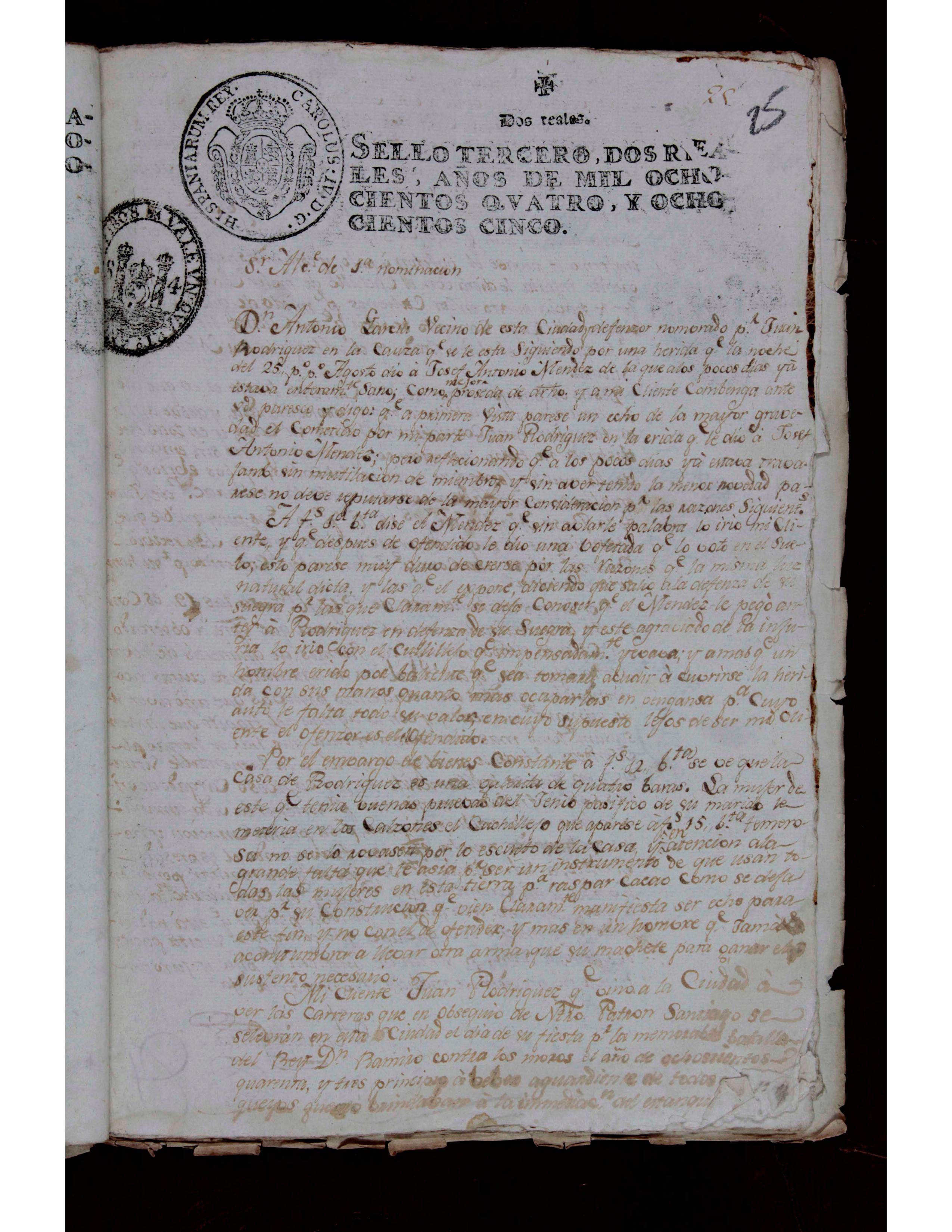| dc.description | Petición de Antonio García para que Juan Rodríguez sea puesto en libertad por la herida que le profirió a José Antonio Méndez. El documento es del año 1808 y es autógrafo. El texto forma parte de un documento custodiado en el Archivo Nacional de Costa Rica (Complementario Colonial, expediente 6328, ff. 25r-26v). Cómo citar el documento: Año 1808, COHIECOS-027, [fecha de consulta]. https://repositorio.iiarte.ucr.ac.cr/handle/123456789/9241 | |