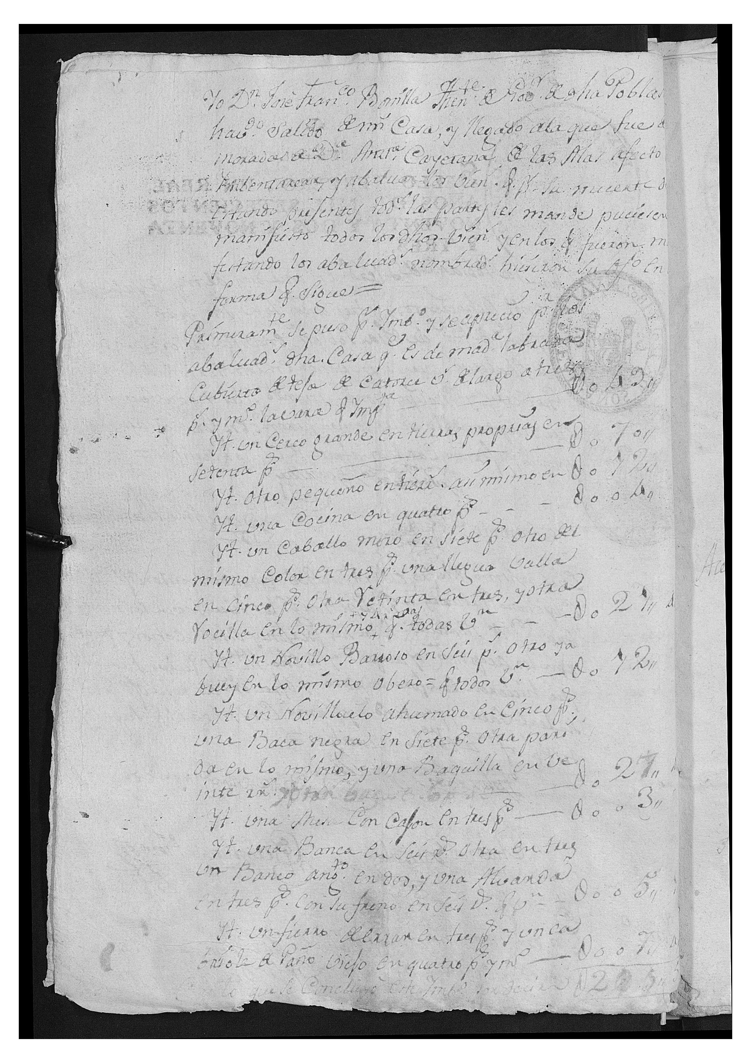 | dc.description | Inventario de bienes de Antonia Soto. Se trata de un documento datado en el 27 de mayo de 1811 en Heredia y escrito por José Julián Rodríguez, alcalde primero de Heredia. El texto está escrito en letra humanística y forma parte de un documento custodiado en el Archivo Nacional de Costa Rica (Mortuales Coloniales de Heredia, expediente 1998, ff. 4r-5v). El documento digitalizado fue obtenido de FamilySearch. Cómo citar el documento: Año 1811, COHIECOS-005, [fecha de consulta]. https://repositorio.iiarte.ucr.ac.cr/handle/123456789/9241 | |