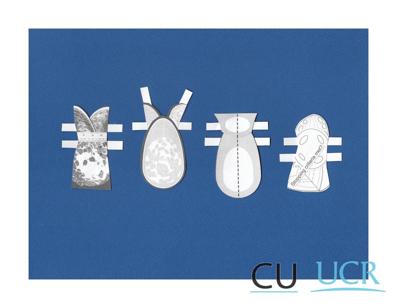 Los collages se apropian de imágenes provenientes de artículos científicos sobre temas relacionados con mamografía y que forman parte de la literatura científica usada por la artista- investigadora en su trabajo de tesis. Los gráficos originales se convierten en vestidos al estilo de las "muñecas de papel", prendas que vestirán a la figura arquetípica de la visión del mundo masculina y occidental, portadora de la bandera que ha unido a la ciencia y el arte históricamente: el Hombre de Vitruvio, de Leonardo da Vinci. La serie representa aspectos estéticos inherentes a la investigación científica y evidencian la otredad de la experiencia femenina dentro del discurso científico.