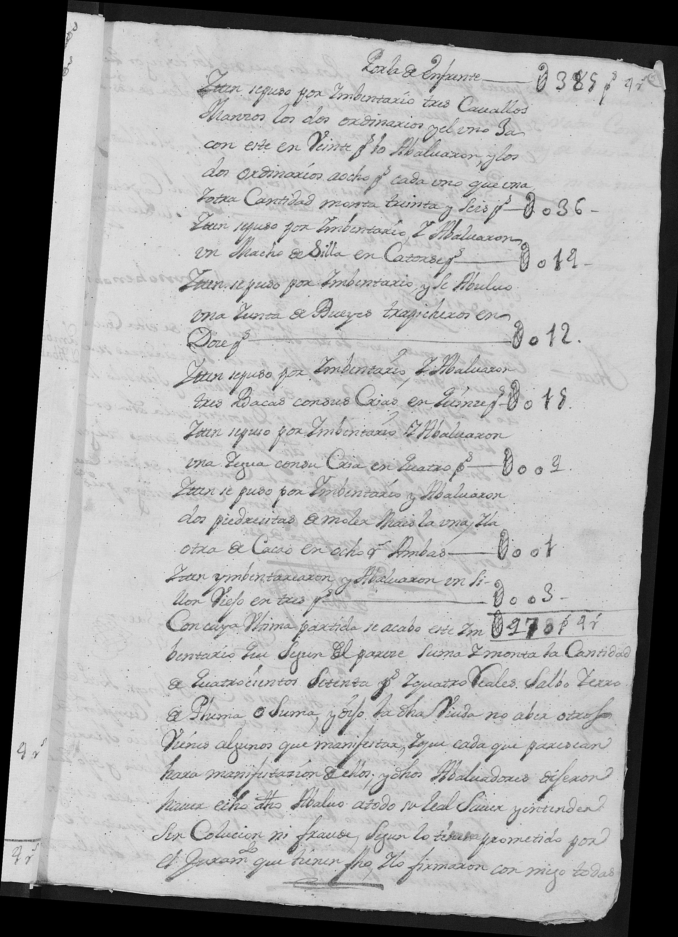 | dc.description | Inventario de bienes de Ignacio Valerio. Se trata de un documento datado en el 6 de setiembre de 1749 en San José, escrito por el capitán José Antonio de Bonilla, teniente general. El texto está escrito en letra humanística y forma parte de un documento custodiado en el Archivo Nacional de Costa Rica (ANCR, Mortuales Coloniales de Heredia, expediente 2038, ff. 4r-5v). El documento digitalizado fue obtenido de FamilySearch. Cómo citar el documento: Año 1749, COHIECOS-037, [Fecha de consulta]. https://repositorio.iiarte.ucr.ac.cr/handle/123456789/9241 | |