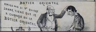 | dc.description | Anuncio publicitario de una botica, aparecen dos hombres conversando, uno le dice al otro que si quiere curarse debe ir a la botánica oriental | |