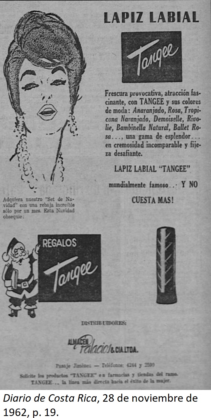 | dc.description | En la parte superior izquierda del anuncio se muestra la imagen de una mujer con un texto debajo. En la parte superior derecha se presenta un texto explicativo acerca de las propiedades del labial de la marca Tangee. En la parte inferior derecha se visualiza la imagen del labial y en la inferior izquierda un San Nicolas. | |