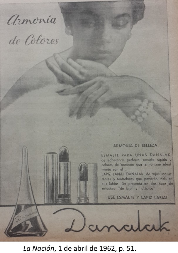 | dc.description | El anuncio muestra en su parte superior a una mujer con las manos cerca de su cuello y mostrando sus uñas pintadas cerca de sus labios pintados. Debajo aparece un texto explicativo acerca de las cualidades del esmalte y del labial de la marca Danalak. Finalmente se presente una imagen de dos labiales y un esmalte. | |