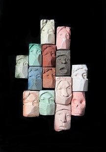 | edm.currentLocation | Relieves de cerámica, elaborados con arcilla de colores, en escala pequeña con formas de ladrillo, constituída por 50 piezas que muestran la fusión entre rostros, sentimiento y espacio. | |