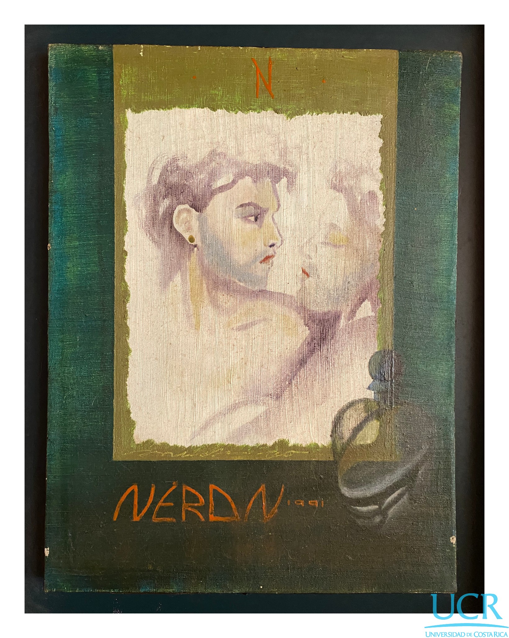 | dc.description | Pintura con dos rostros humanos en un fondo rectangular blanco, el cual se encuentra sobre un doble fondo en dos tonalidades de verde. | |