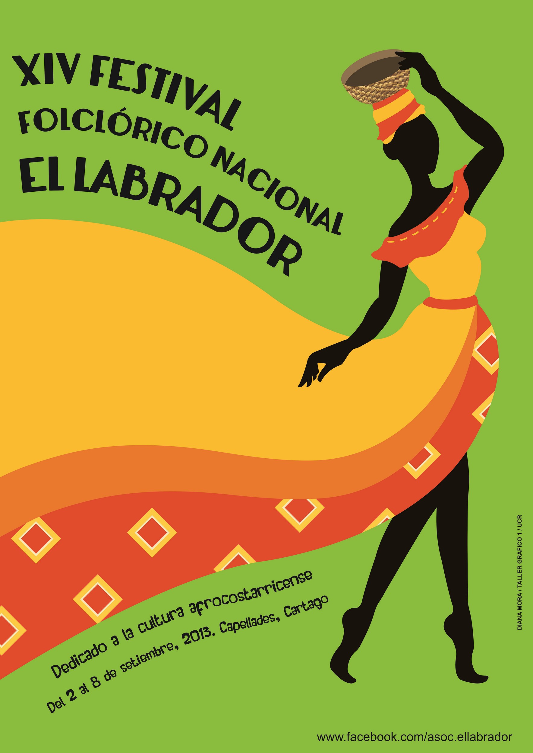 Consta de 14 carteles que se trabajaron para dos eventos culturales: un Festival de Folclor: ”XIV Festival Folclórico Nacional El Labrador”, realizado en Capellades de Cartago en Setiembre de 2013 y un Festival de cine afro “XV Festival de Cine Flores de la Diáspora Africana, 2013”, realizado en San José.