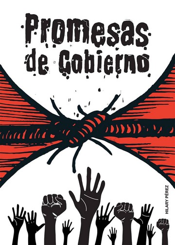 | dc.description | Cartel vertical con fondo de color blanco. Arriba en el texto dice "Promesas de gobierno". La imagen muestra una bolsa amarrada por el centro y abajo unas manos que se levantan. | |