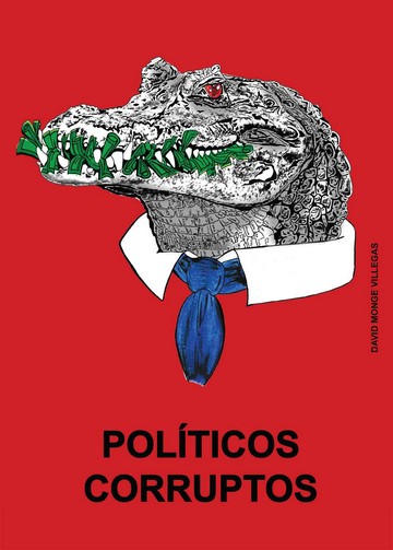 | dc.description | Cartel vertical con fondo de color rojo, con texto que dice lo siguiente: "Políticos corruptos". Como imagen se muestra la cabeza de un cocodrilo con billetes arrollados en su boca y tiene corbata y cuello blanco. | |