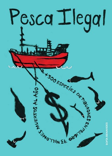| dc.description | Cartel vertical con fondo de color turquesa. Además, como texto dice lo siguiente: "Pesca ilegal". Y de imagen está un barco, cuya ancla tiene forma de signo de dólar y una red con el texto: + de 300 especies de tiburones en peligro 73 millones muertos al año". Y alrededor diferentes especies de tiburones. | |