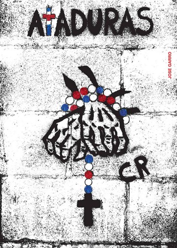 | dc.description | Cartel vertical con fondo de pared de blocks de concreto pintada de blanco. Y de texto: "Ataduras CR". Como imagen se muestra un mural pintado con stencil en la pared, en el se aprecian dos manos atadas con un rosario que tiene los colores de la bandera de Costa Rica. | |