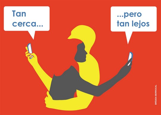 | dc.description | Cartel horizontal con fondo de color rojo, en el texto dice: "Tan cerca… …pero tan lejos". Como imagen hay dos personas abrazadas con teléfonos en las manos. | |