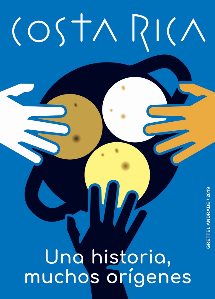 | dc.description | Cartel vertical con fondo de color azul. Y tiene de texto lo siguiente: "Costa Rica. Una historia, muchos orígenes". De imagen se encuentra un comal en el que tres manos de diferente color de piel toman tres diferentes colores de pan o tortilla. | |