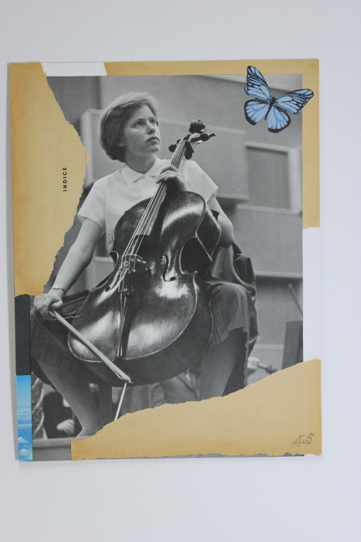 | dc.description | Collage bidimensional conformado por varios recortes de papel y una fotografía de una mujer tocando un instrumento. | |