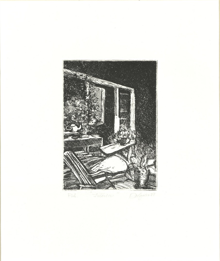 | dc.description | Obra en escalas de grises en donde se muestra un paisaje de casa con silla y ventana. | |
