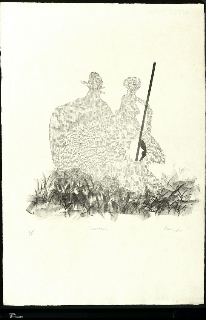 | dc.description | En esta obra se encuentran en colores de escala de grises un paisaje y en ella dos siluetas, debajo de las mismas se aprecia zacate. | |