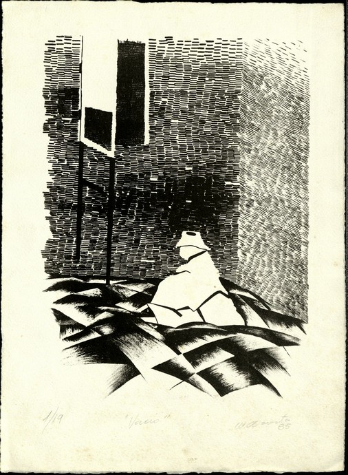 | dc.description | Obra con alto contraste en donde se muestra un paisaje con una silueta. | |