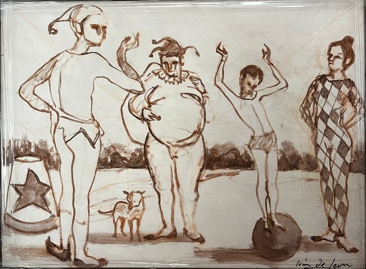 | dc.description | Obra representando cuatro figuras humanas y un perro. | |