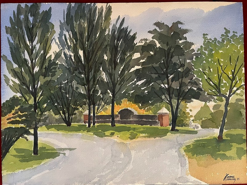 | dc.description | Obra representando un paisaje con varios árboles y una calle. | |