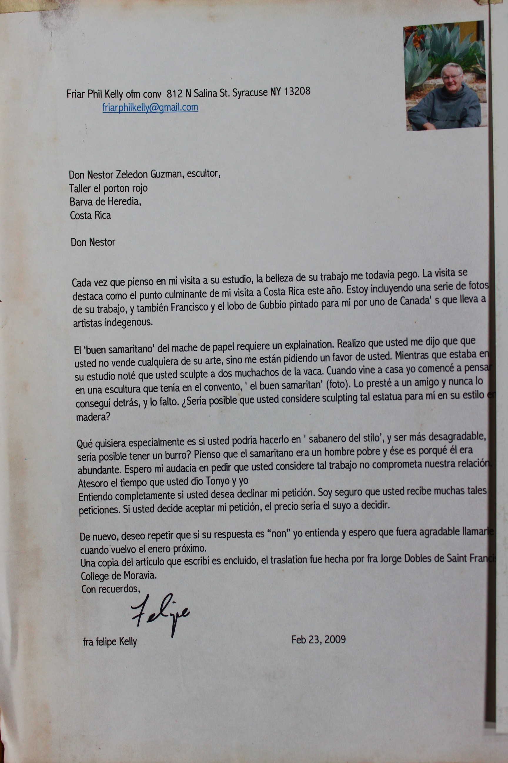 Carta de Fra Felipe Kelly a Néstor Zeledón