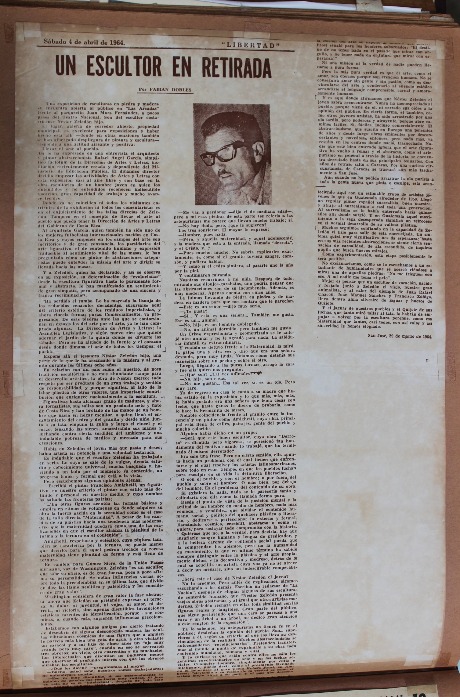 | dc.description | Reseña y opinión de Fabian Dobles sobre el trabajo de Néstor Zeledón Guzmán, enfocado principalmente en su exposición de esculturas en Las Arcadas. No hay información disponible sobre su medio de publicación. | |