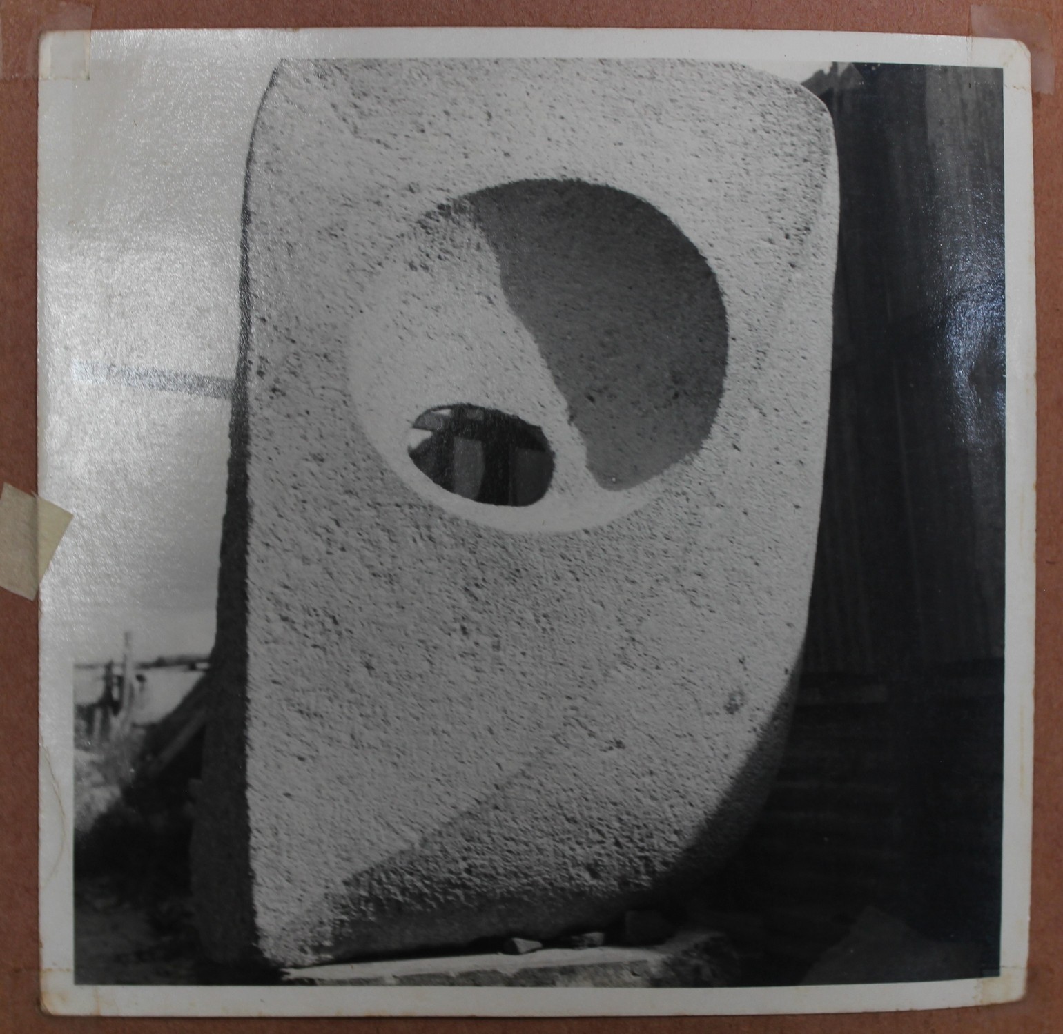| dc.description | Fotografía frontal de una escultura abstracta en piedra, realizada por Néstor Zeledón. | |