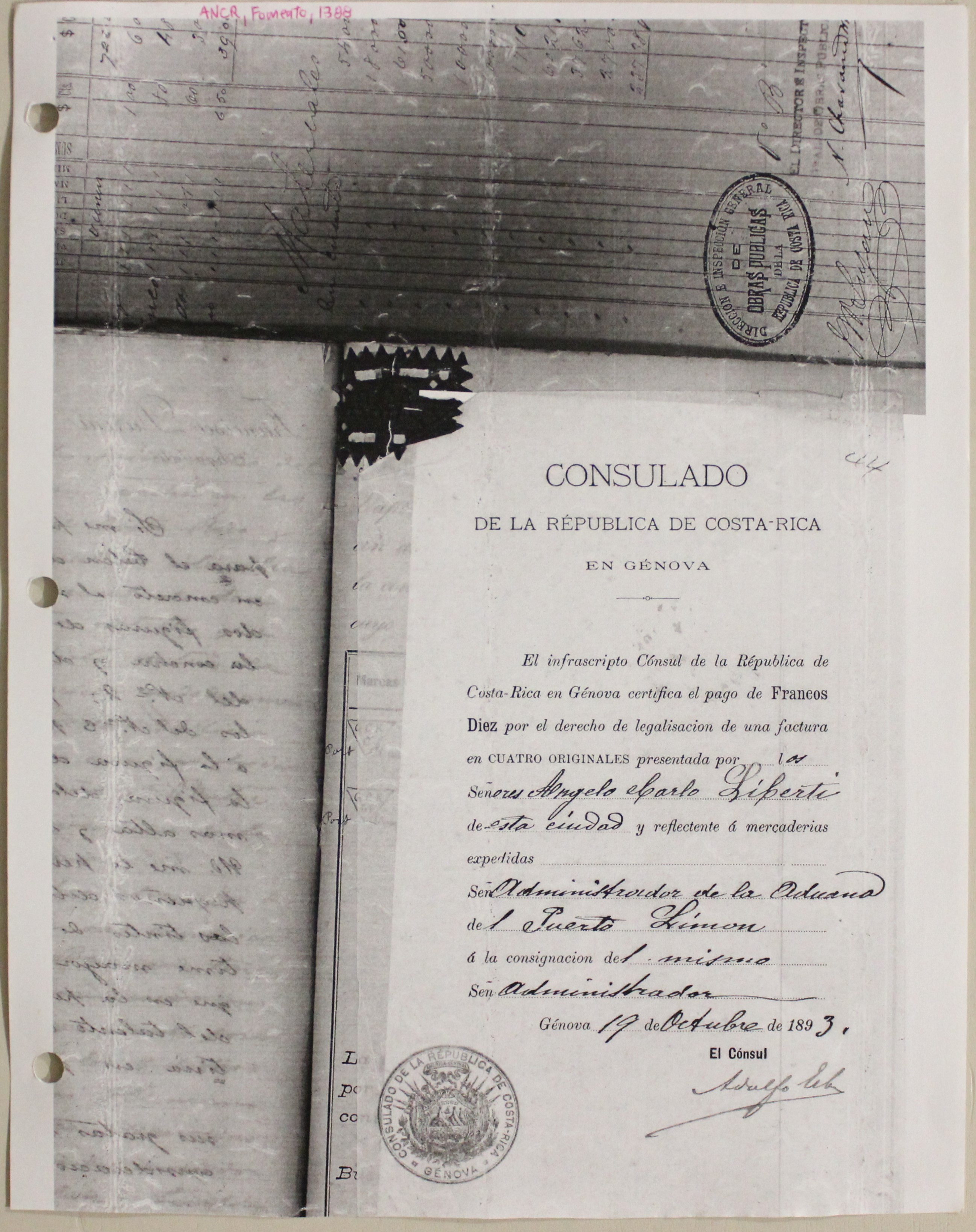 | dc.description | Fotografía de fotocopia de certificación de pago por parte del Consulado de la República de Costa Rica en Genova dado el 19 de octubre de 1893. | |