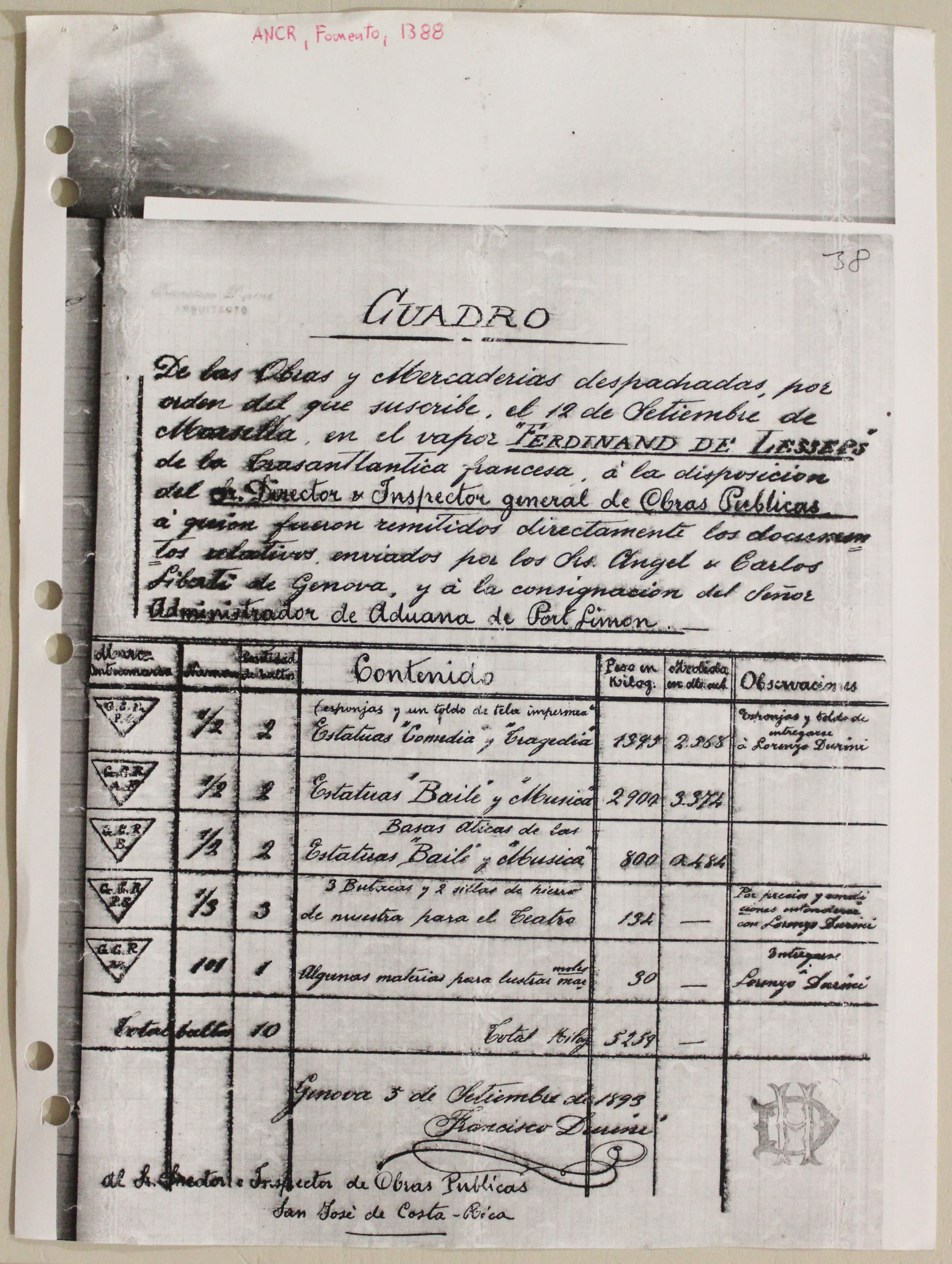 | dc.description | Fotografía de fotocopia de cuadro de contenidos dirigido a Nicolás Chavarría, Director e Inspector General de Obras Públicas, desde el Puerto de Marsella, detallando las piezas y componentes que fueron despachados. | |