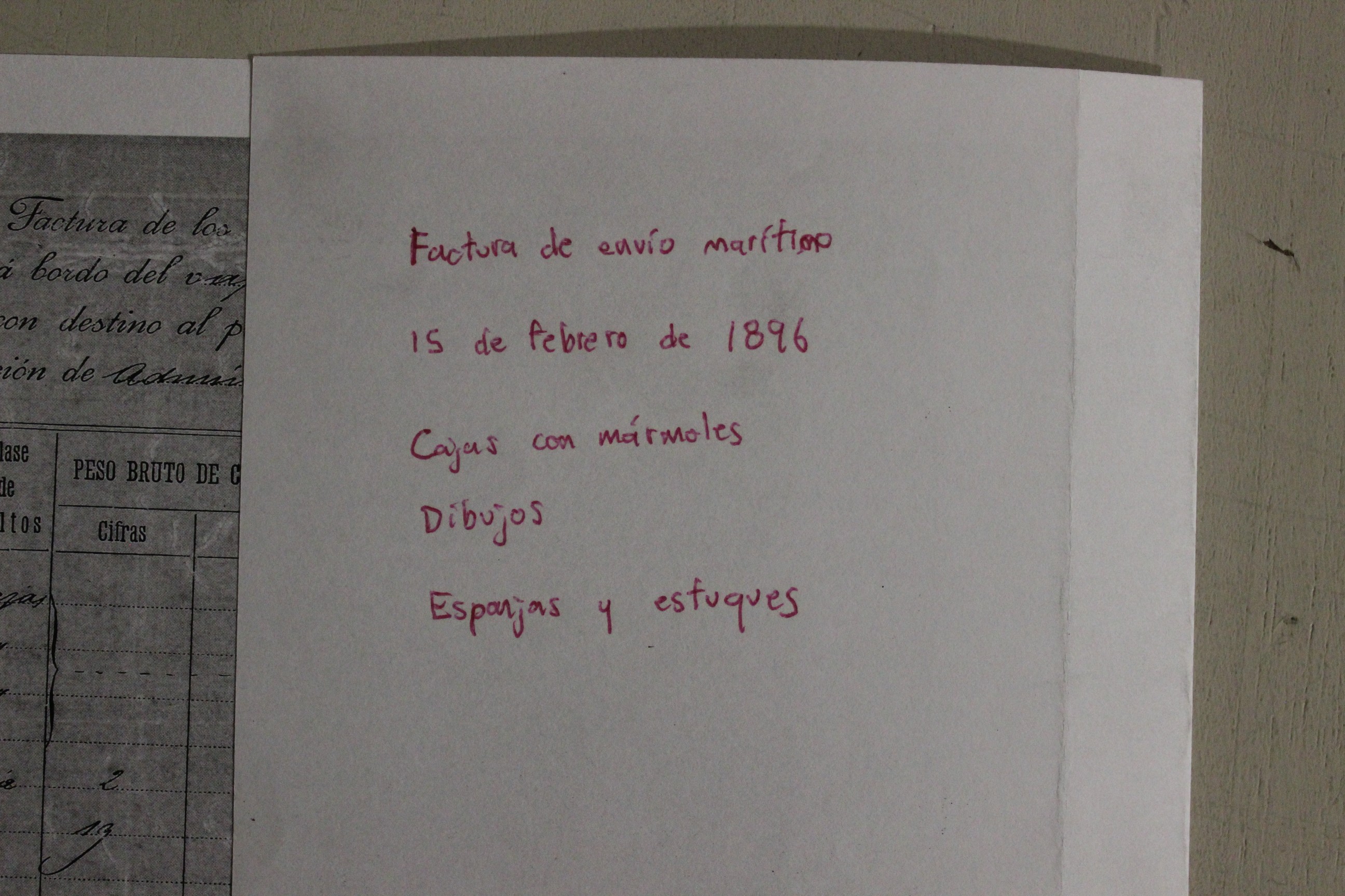 | dc.description | Fotografía de fotocopia de factura por el envío marítimo 15 de febrero de 1896, contiene cajas con mármoles, dibujos, esponjas y estuques. Fotografía del reverso de la fotocopia de factura por el envío marítimo 15 de febrero de 1896, contiene cajas con má | |