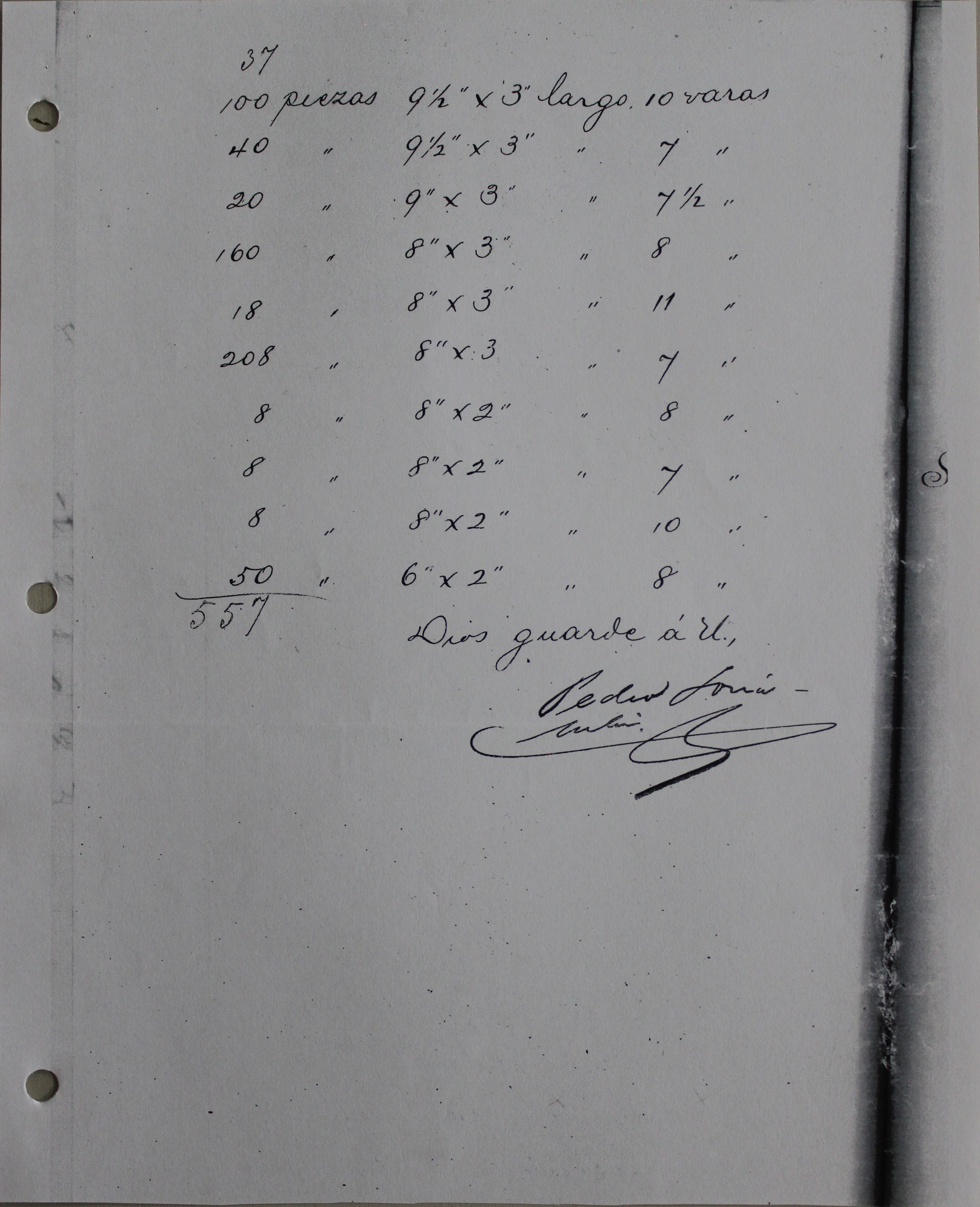 | dc.description | Fotografía de fotocopia de carta con datos de materiales necesarios firmada el 30 de julio del 1897 dirigida al Director General de Obras Públicas, primera hoja. Fotografía de fotocopia de carta con datos de materiales necesarios firmada el 30 de julio de | |