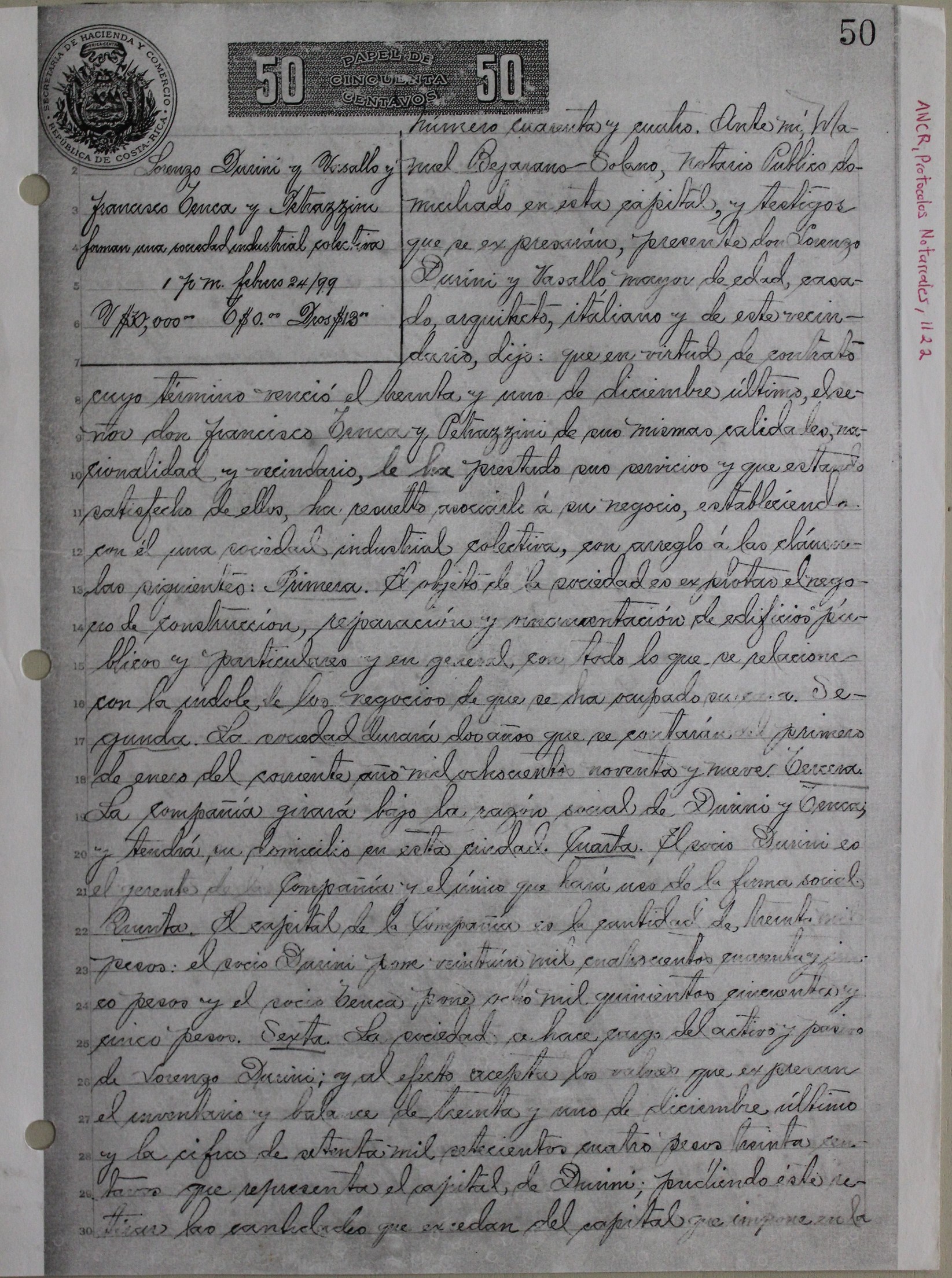 | dc.description | Fotografía de fotocopia de contrato entre Lorenzo Durini y Francisco Tenca donde se forman la sociedad industrial "Durini y Tenca" contrato firmado el 24 de Febrero de 1899, primera hoja. Fotografía de fotocopia de contrato entre Lorenzo Durini y Francisco | |