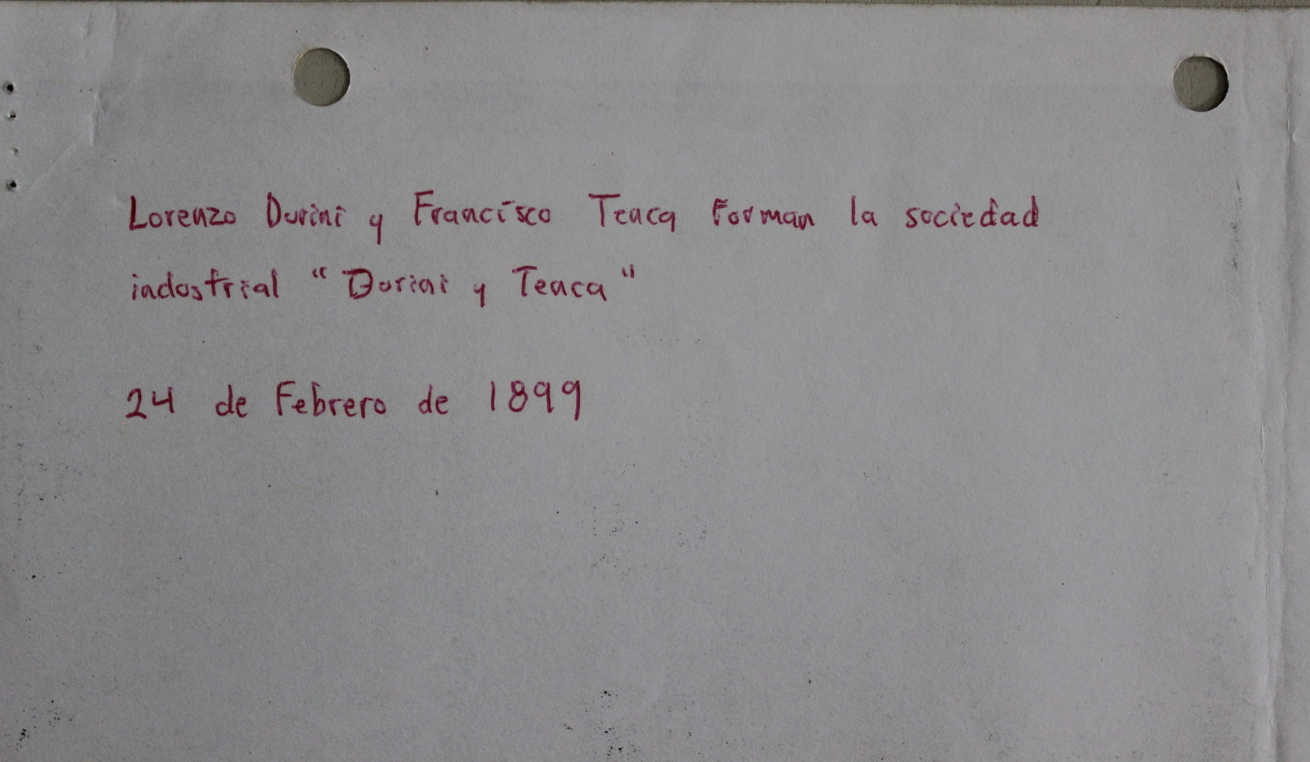 | dc.description | En el reverso de la última página se incluye la anotación: Lorenzo Durini y Francisco Tenca forman la sociedad industrial "Durini y Tenca" 24 de Febrero de 1899 | |