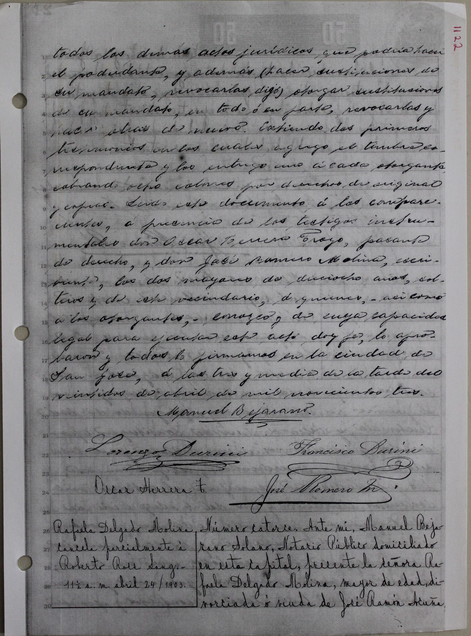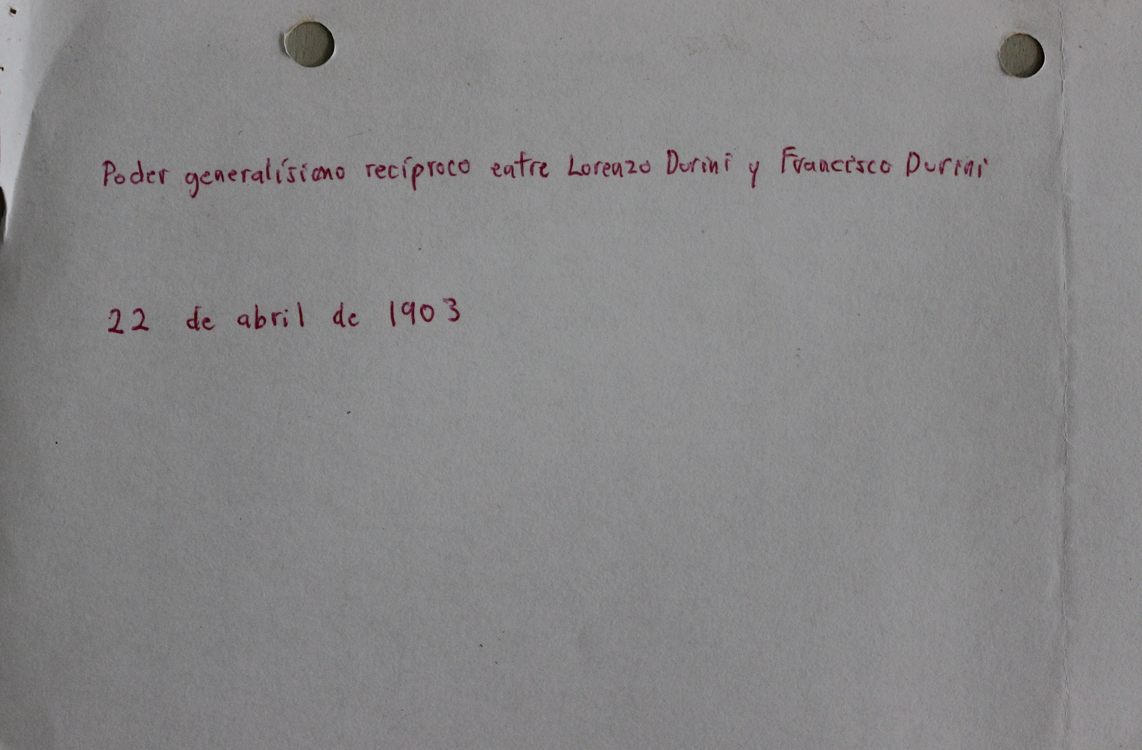 | dc.description | Fotografía de contrato sobre el poder generalísimo recíproco entre Lorenzo Durini y Francisco Durini firmado 22 de abril de 1903, primera hoja del contrato. Fotografía de contrato sobre el poder generalísimo recíproco entre Lorenzo Durini y Francisco Du | |