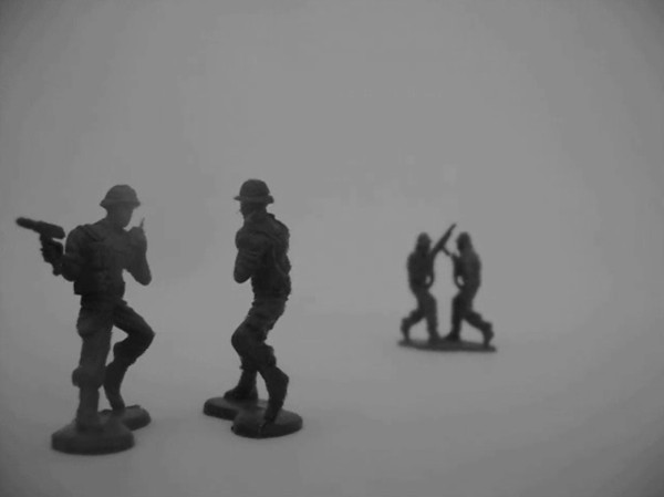 | dc.description | Fotografía que muestra cuatro figuras de soldados, dos más al frente de la imagen y los otros dos en la parte de atrás, en ambas las dos figuras se encuentran una enfrente de la otra en modo de defensa. | |