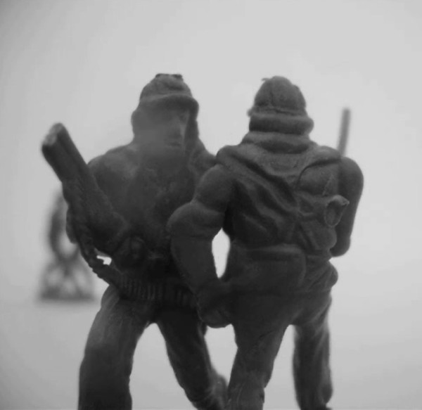 | dc.description | Fotografía que muestra a dos figuras de soldados enfrentadas, en la imagen se muestra el perfil de las figuras y es una toma cercana, la cual permite solo observar la mitad de sus cuerpos. | |